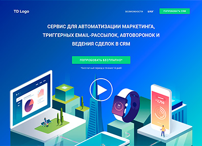 Website for CRM company (HTML). Responsive website from PSD layout with parallax, sticky columns, and blog.