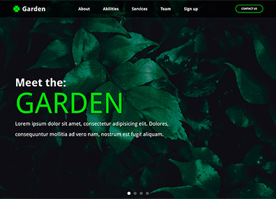 Responsive landing page with slider, scroll-to-section menu and fixed background images.